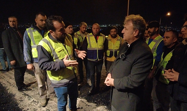 Bornova Belediyesi’nin Şubat ayında açılan Asfalt tesisi ile başlattığı büyük yol hamlesinde çalışmalar gece gündüz demeden devam ediyor. Bornova Belediye Başkanı Dr. Mustafa İduğ, Kızılay Mahallesi’nde gece asfalt çalışması yapan belediye işçilerini serim çalışmalarının son gününde ziyaret ederek, baklava dağıttı.
