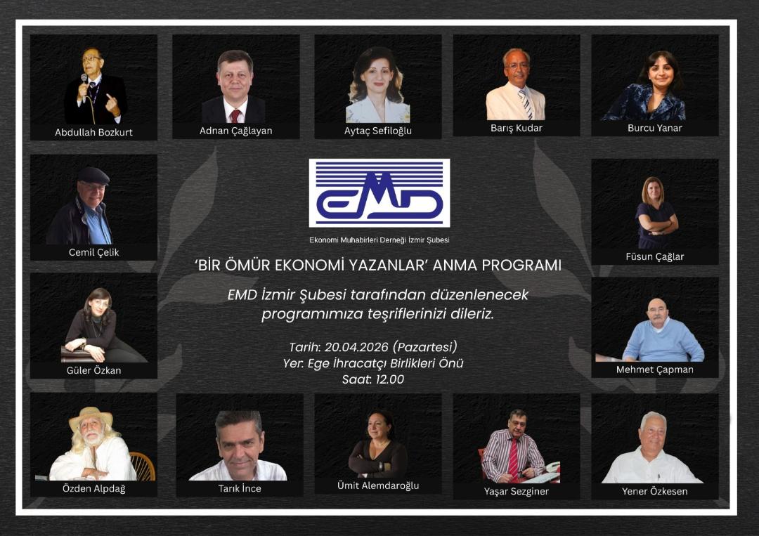 “Bir Ömür Ekonomi Yazanlar” anma etkinliğinde; Ekonomi Muhabirleri Derneği Kurucu Başkanı Özden Alpdağ, Abdullah Bozkurt, Adnan Çağlayan, Aytaç Sefiloğlu, Barış Kudar, Burcu Yanar, Cemil Çelik, Füsun Çağlar, Güler Özkan, Mehmet Çapman, Tarık İnce, Ümit Alemdaroğlu, Yaşar Sezginer ve Yener Özkesen anılan ekonomi muhabirleri oldu.Ege İhracatçı Birlikleri önünde düzenlenen anma etkinliğine Ekonomi Muhabirleri Derneği İzmir Şubesi Başkanı Murat Demircan, İzmir Gazeteciler Cemiyeti Yönetim Kurulu Üyesi Tolga Albay, Ekonomi Muhabirleri Derneği İzmir Şubesi Geçmiş Dönem Başkanları Macit Sefiloğlu, Sedat Alp, Hicran Özdamar Yalçınkaya, EMD İzmir Şubesi Yönetim Kurulu, Denetim Kurulu, Onur Kurulu üyeleri ve gazeteciler katıldı.