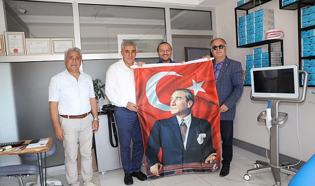 Güzelbahçe Belediye Başkanı Mustafa İnce ve Cumhuriyet Halk Partisi Güzelbahçe İlçe Başkanı Çağlayan Bilgen, 29 Ekim Cumhuriyet Bayramı öncesi esnaf ve vatandaşları ziyaret ederek bayrak dağıttı.