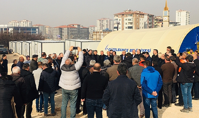 Depremin İkinci haftasından itibaren alana gelip konteyner ve çadır kurduklarını ifade eden Güzelbahçe Belediye Başkan Yardımcısı Mustafa Günay, “Depremin ilk gününde Güzelbahçe’de yardımları toplamaya başladık. Yardımların daha iyi ulaşabilmesi ve dağıtımın sağlamak adına bu merkezi kurduk. Günlük bin depremzede vatandaşımıza yemek çıkartıyoruz. 1’inci Adada 40 konteynerimizin alt ve üst yapı çalışmalarını tamamladık. Şimdi 2 ve 3’üncü adalara konteyner geldikçe yerleştiriyoruz. Hedefimiz 150 konteyner koymak. Eskişehir Büyükşehir ve Bodrum Belediyelerinden de bu konuda destek alıyoruz. Ayrıca Eskişehir ESKİ ve Muğla MUSKİ’den altyapı desteği aldık. Yaralarımızı birlikte saracağız. Başkanımız Mustafa İnce gereken ne varsa deprem bölgesinde yapacağız her defasında belirtiyor. Bugün sizleri aramızda görmek bizlere güç verdi sağ olun var olun” diye konuştu.